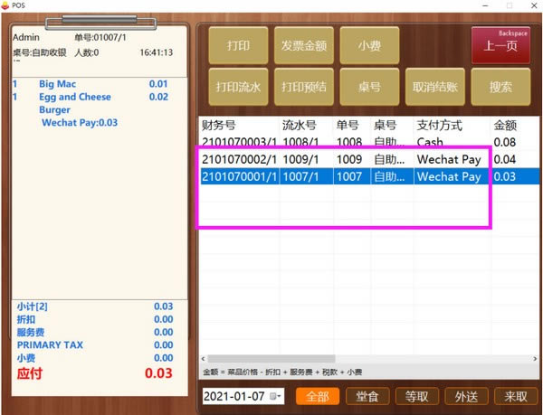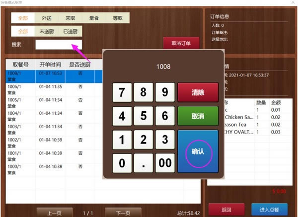 1、kiosk下单后,如果是选择现金下单,启动收银前台——取单,搜索对应的订单取出,如下