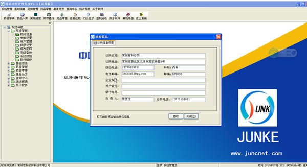 君科诊所管理系统集成了药品进销存管理系统和电子处方管理系统,适用于诊所、药店、简易门诊、卫生室、卫生所等行业。并且各类报表齐全,功能全面,为药店、门诊、诊所、卫生室、医务室等单位日常管理提供了极大的便利。