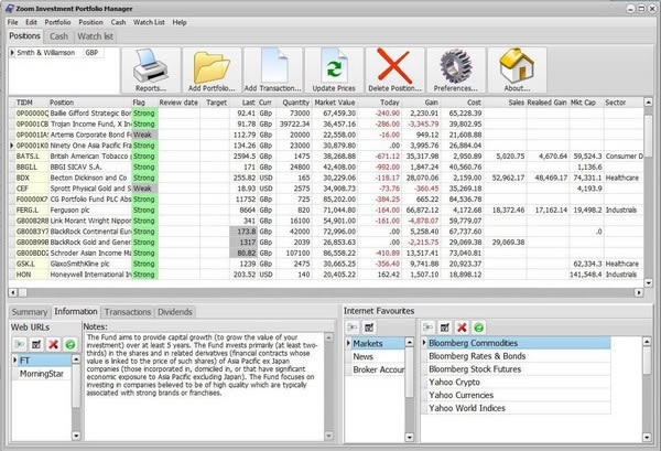 Zoom Investment Portfolio Manager是一款简单易用的股票、股票和基金投资管理器,与基于网络的投资组合不同,您的数据是保密的,存储在您自己的电脑上。