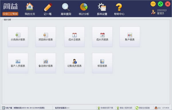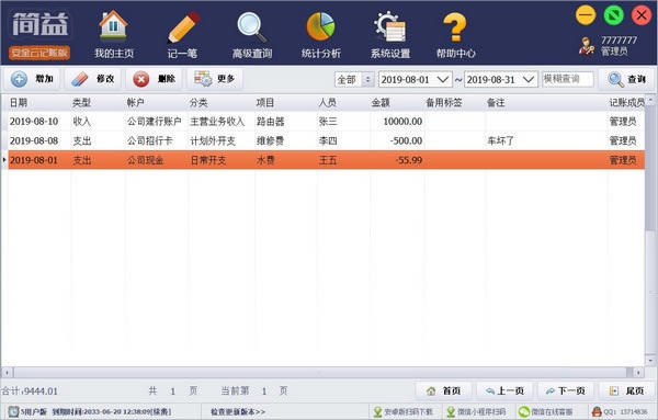 使用简益通用流水记账软件轻松记录日常收入和支出情况,了解当前的资金剩余和使用情况,支持电脑、手机、平板多个平台记账,手机、微信、电脑实时同步数据,支持云端记帐,可单用户记帐,也可多用户协同记账,分权限管理,适合企业、公司、个人或多人协同管理记录自己的日常收支记账。