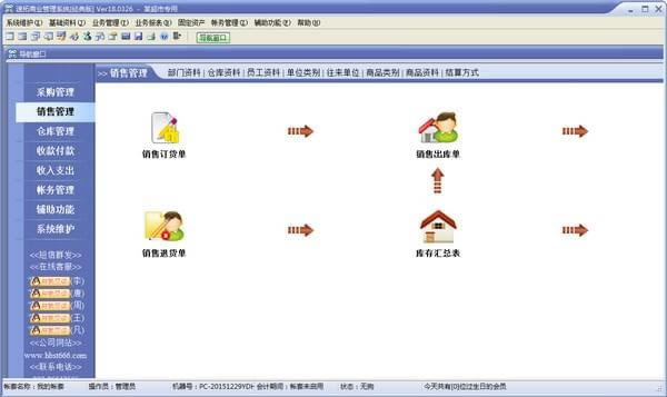 智能订货、进货入库、进货退回、销售出库、销售退货、报损、报溢、调入、调出、拆零、组装、盘点、借出、借入、收款、付款、预收、预付、收入、支出、成本、利润及财务会计核算等
