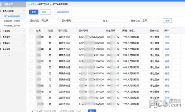 菜单栏:位于左侧,可点击各个菜单进行业务操作。