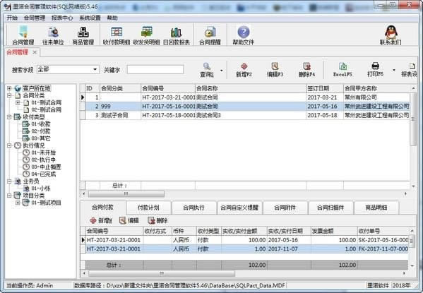 2.合同收付款管理: