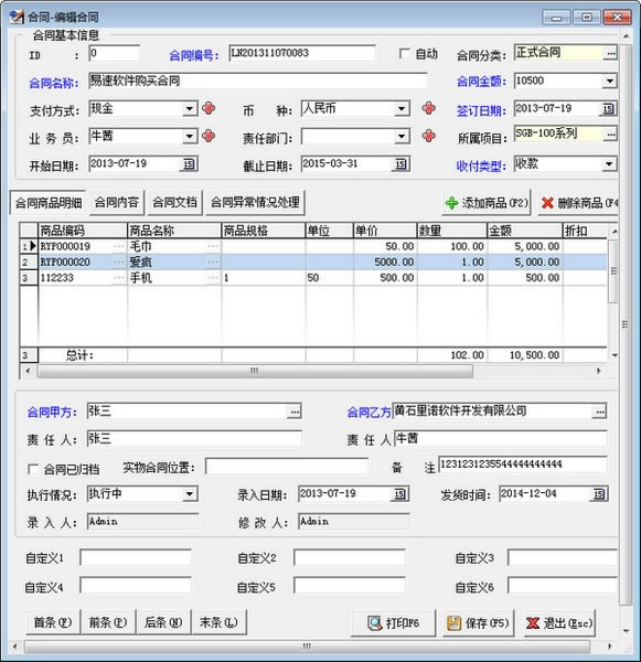 1.合同管理功能: