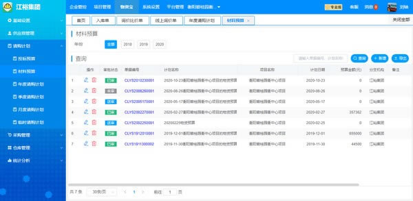 主要功能:供应商、物资库、预算、需求、采购、招标、集采、合同、供货、验收、仓库、发票、结算;