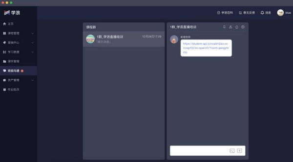 已购课用户自动加入班级群,同时支持1V1私聊,老师可以更好的与学生进行沟通交流。