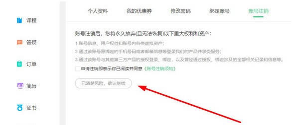 3、接着进入到账号注销栏目,申请注销账号,此账号中的手机号码与邮箱信息都将不复存在,如下图所示: