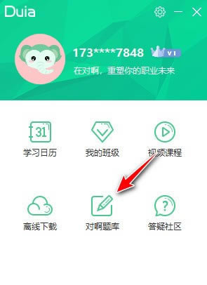 1、首先需要先进入到对啊课堂PC客户端内,如果你想要购买课程,则需要先进入到官网才能够购买,点击进入对啊题库即可,如下图所示: