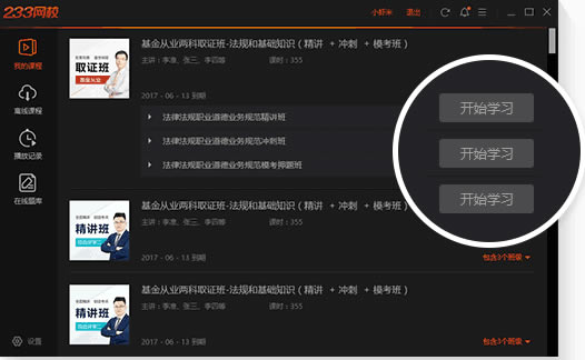 02登录后进入我的课程界面,选择自己要学习的课程,点击“开始学习”