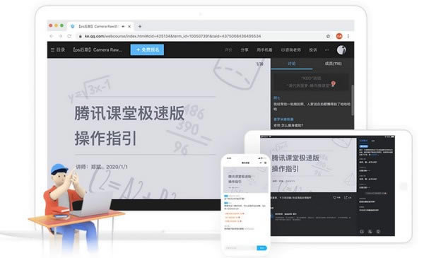 腾讯课堂老师极速版,领先体验课堂功能,丰富你的教学方式,腾讯课堂老师专用版本,为老师量身定做。老师客户端支持屏幕分享、PPT、视频、摄像头多场景教学和举手、答题卡等课堂互动工具。