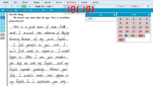 2)键盘给分:可以通过按下键盘数字键进行打分,按下回车键即为分值确认,有步骤分