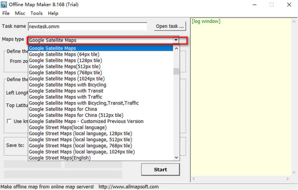 3、选择地图类型,自己选择地图吧,例如默认选择 Google Ststelite Maps
