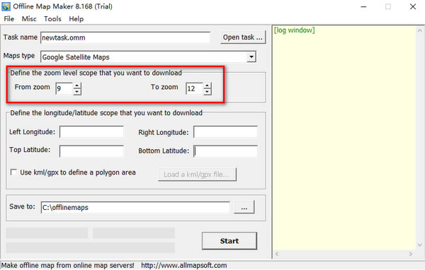 4、下载以后缩放的级别,可以自己设置参数,支持From zoom、To zoom