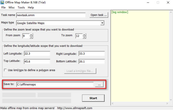 6、保存的内容,可以设置C:offlinemaps,也可以调整新的地址