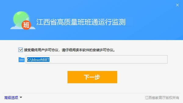 (1)进入班班通运行监测系统安装页面,选择安装的文件夹,点击“下一步”;