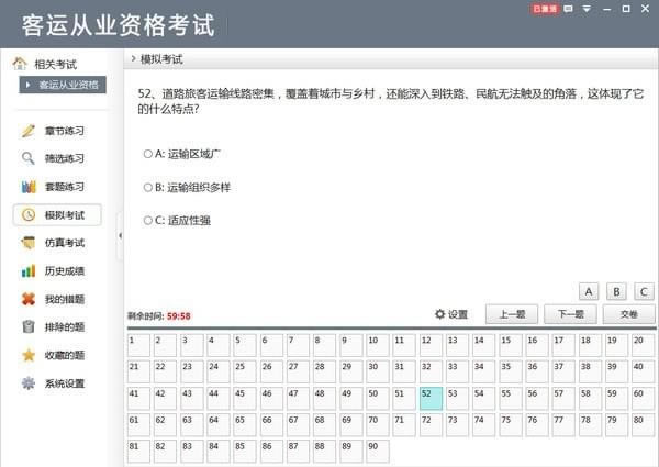 客运从业资格考试是一款优秀的客运从业资格考试系统软件,客运从业资格考试是针对客运从业资格考试过程精心设计的一套功能全面、性能优异,操作简洁的助考软件,有需要的赶快下载吧!