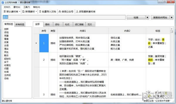 三是开放上传功能,资料汇集各行各业的智慧,定时更新到*前沿的材料。群主专门建立了一个社群,来自各行各业的文秘老铁可以自由上传下载素材库,一键就能导入他人共享的素材库,海量优质素材不是梦。这么好用的软件,甚至都无需安装,完全是绿色软件,这意味着你可以把它放入你的U盘和移动硬盘,插上任何一台电脑就可以开始撸材料,甚至无需网络。再也不需要拷贝一大堆word文档、携带一大袋打印资料了。