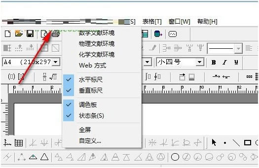 4、提示您可以在视图上找到数学文献环境、物理文献环境、化学文献环境、web方式、水平标尺