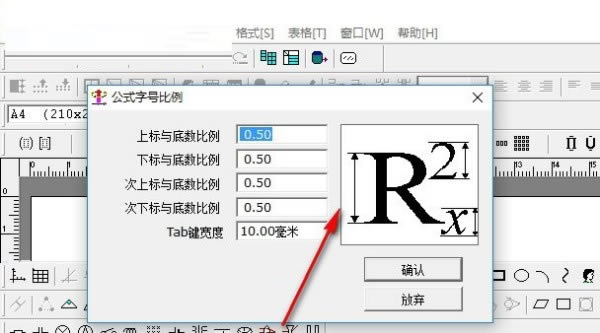 8、提示你可以设置公式字号比例、上标与底数比例、下标与底数比例、次上标与底数比例