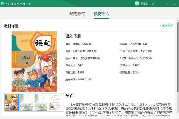 二、进入软件后可以在教材中心进行书籍的下载和在线预览。