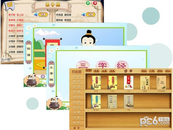 弟子规、三字经、论语、百家姓、大学、中庸等国学启蒙内容,全部以动漫的方式,寓教于乐。