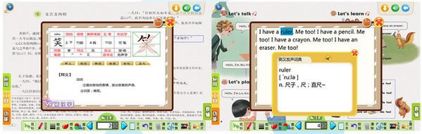2、生动的动漫形式资源,让老师轻松实现真正的多媒体教学。