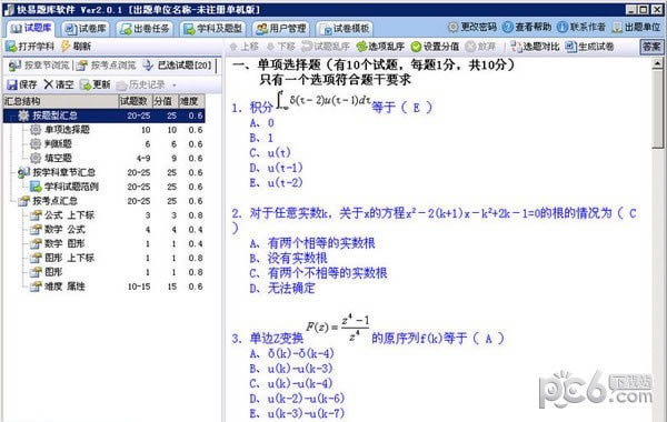 简洁的试题浏览模式:仅用左右两个窗口浏览试题,左边显示学科的章节名称结构,右边显示符合条件的试题,其他试题显示条件设置都在上边的工具条按钮中,界面清爽。