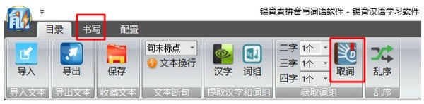 点击【取词】按钮,就能获取汉字对应的词组。然后点击【书写】进入书写界面。