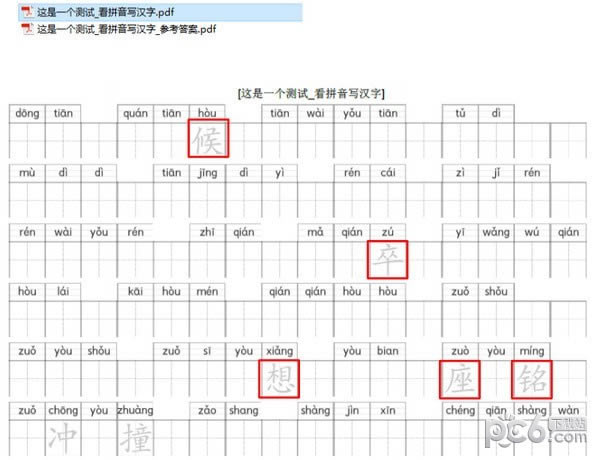 5. 点击【汉字】按钮,就可以导出看拼音写汉字的 pdf 文档。
