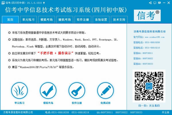 信考中学信息技术考试练习系统四川初中版是一款特色鲜明,功能全面的考试软件,拥有一样的考试环境,一样的考试题型,自动计时评分,让您提早适应考试环境,为您的考试,保驾护航。