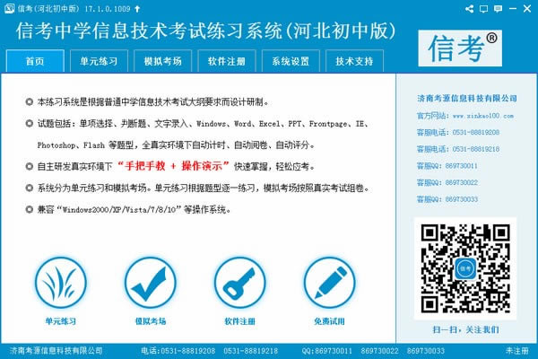 信考中学信息技术考试练习系统河北初中版,一样的考试环境,一样的考试题型,自动计时评分,让您提早适应考试环境,为您的考试,保驾护航。