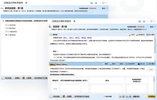 注册会计师机考软件是国内一款针对注册会计师考试而研发的免费考试系统,考试科目全覆盖,包含注册会计师考试的六门科目;真题演练更有效,包含历年的考试真题,综合性检测整体知识的掌握结构,仿真系统更真实 ,模拟真实考试的流程、页面、步骤、题型,提前感受真实的考试环境。