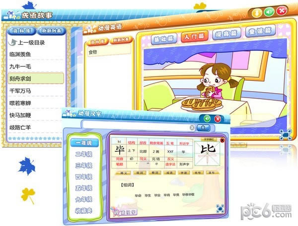 从基础到提高,从小学到中学,从课内到课外,3600个动漫汉字,1万多个动漫教学资源,以动画的形式展示当前知识点,情景再现,寓教于乐,培养孩子的学习兴趣,让学习从此变得简单快乐!