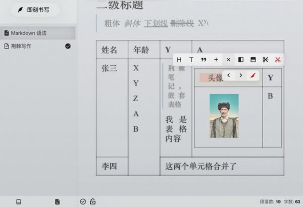 1、高效的表格编辑功能,合并单元格,插入行列,表格嵌套(未来会支持表格样式,以及单元格样式编辑);
