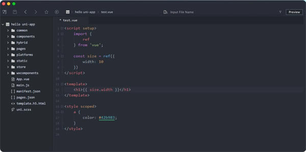 像许多其他代码编辑器一样,HBuilderX采用通用的用户界面和左侧的资源管理器布局,而右侧的编辑器则显示已打开文件的内容。