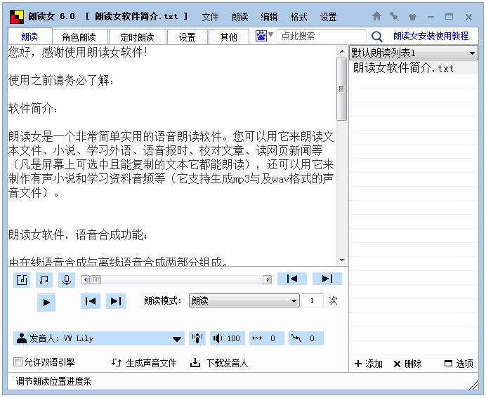其本身不包含任何语音库,所以您在安装好朗读女软件后:
