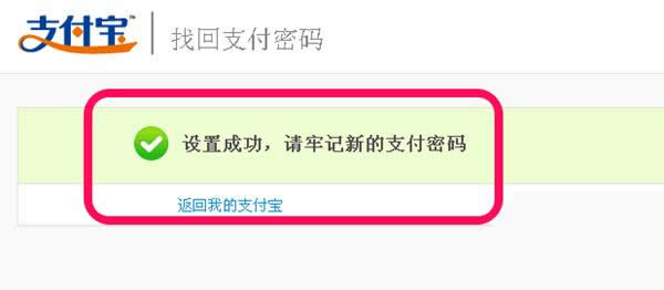 返回设置成功页面,这样我们就找回忘记的支付密码了。记住了,不要再忘记了。
