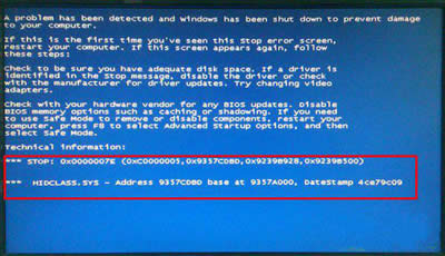 通过上图的蓝屏代码,其实就可以了解到有关的提示,里面的HIDCLASS.SYS说明系统的设备驱动出现了问题,这时候就要及时想办法对其进行有效的处理。