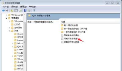 2、依次点击:计算机配置——管理模板——网络——QoS数据包计划程序,找到并双击“限制可保留带宽”;