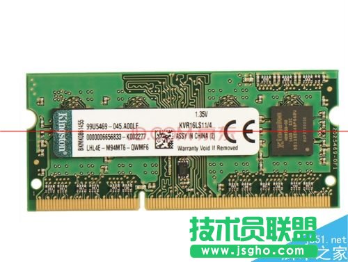 5、不用CPUZ软件检测也可以查看该内存条的电压信息,一般都在内存条正面。假如您原来的内存条是这个1.5V的。