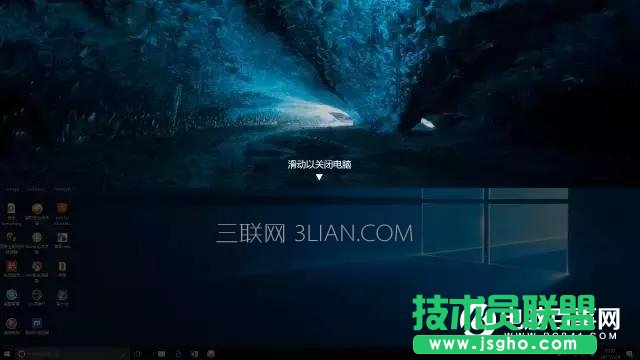 所谓滑动关机,顾名思义,就是滑动着关机,桌面先出现一个锁屏壁纸,然后有“滑动以关闭电脑”几个字,点住往下拉动即可关机。
