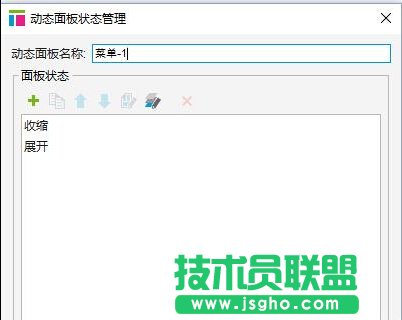 2、双击“菜单-1”动态命板,弹出动态命板管理框,点击新增“收缩”“展开”选项
