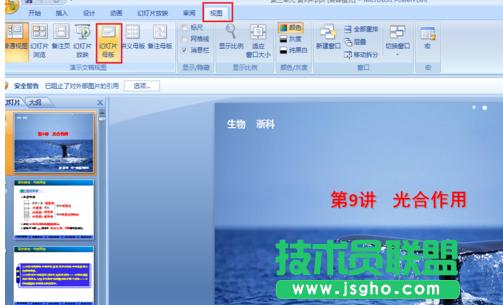 单击工具栏的“视图”,出现下拉列表,单击“幻灯片母版”,出现如图: