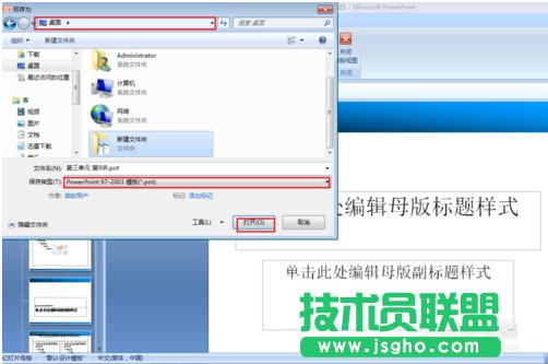 选择存储路径,更改文件格式“pot",单击”保存“,如图: