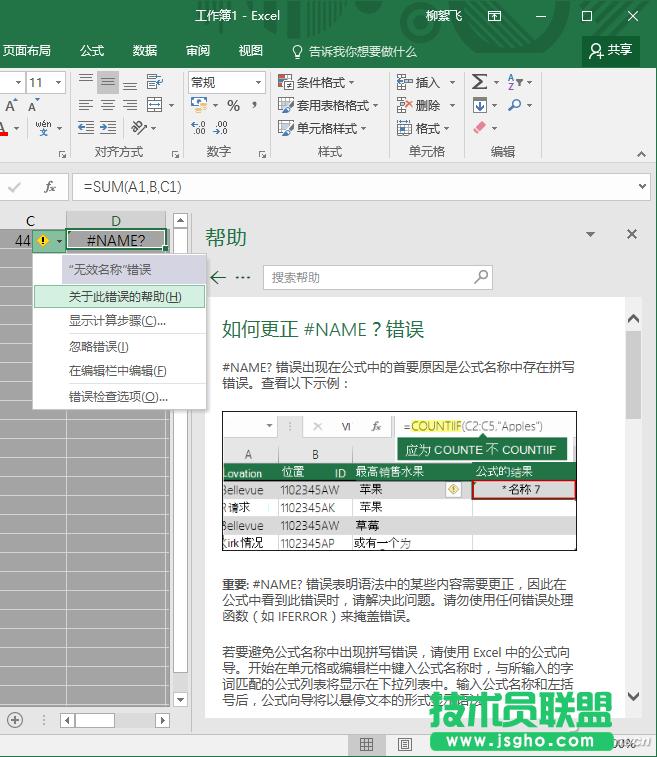 4.#NAME?公式中使用了Excel不能识别的错误名称。