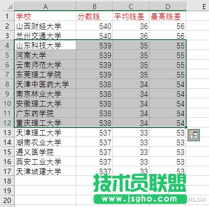 Alt+;选取可见单元格,不含被隐藏的单元格。可用给选定区设定颜色,然后取消隐藏来验证原隐藏的单元格没被选中。