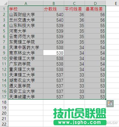 Ctrl+A选择所有与当前单元格相邻的区域数据,包括相邻单元格的相邻单元格。如果再次按下则选中整个工作表,其中包含无数据的空白区域。