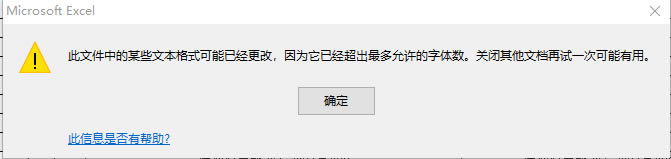 Excel报错:此文件中某些文本格式可能已经更改,因为它已经超出最多允许的字体数。