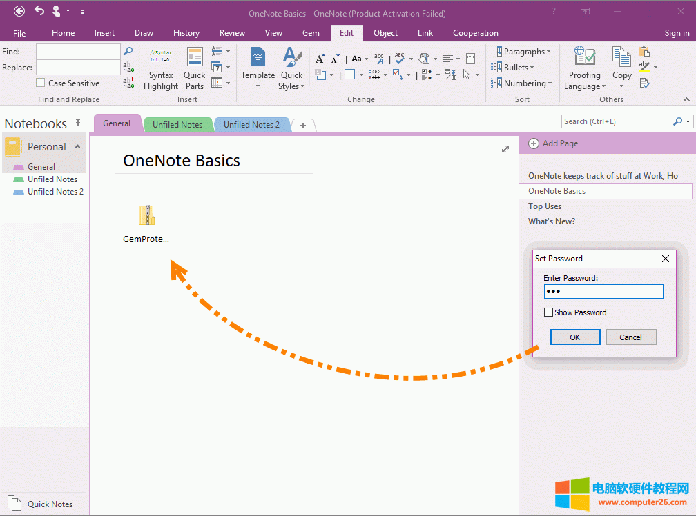 如果想一次加密多个页面,可以先在 OneNote 中选中多个页面后,再使用 Gem 的“密码保护页面” –》“加密页面”功能进行批量加密处理。
