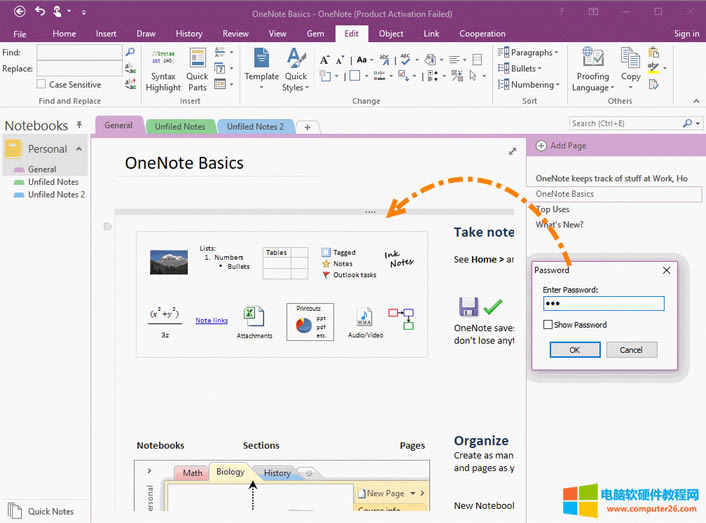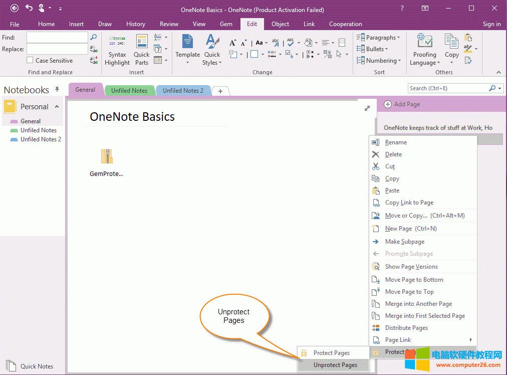 如果想一次解密多个页面,可以先在 OneNote 中选中多个页面后,再使用 Gem 的“密码保护页面” –》“解密页面”功能进行批量解密处理。